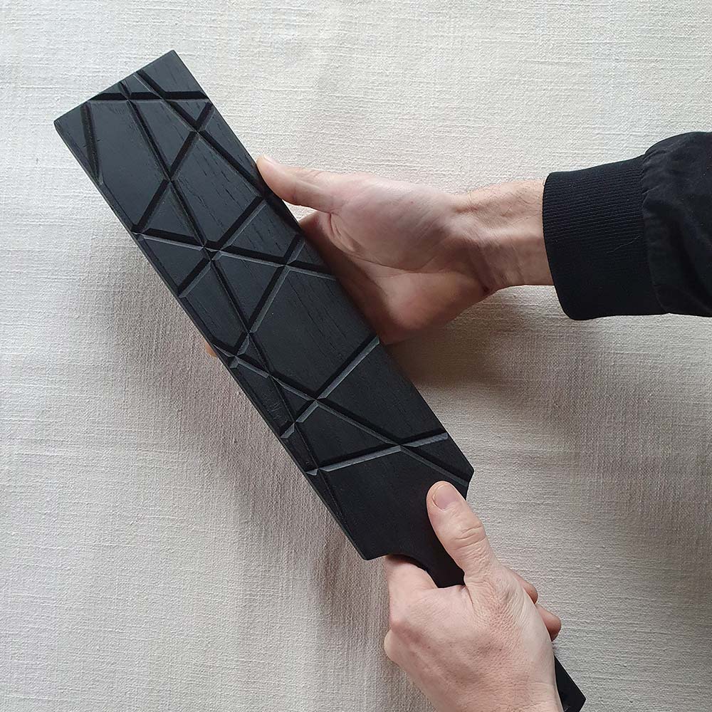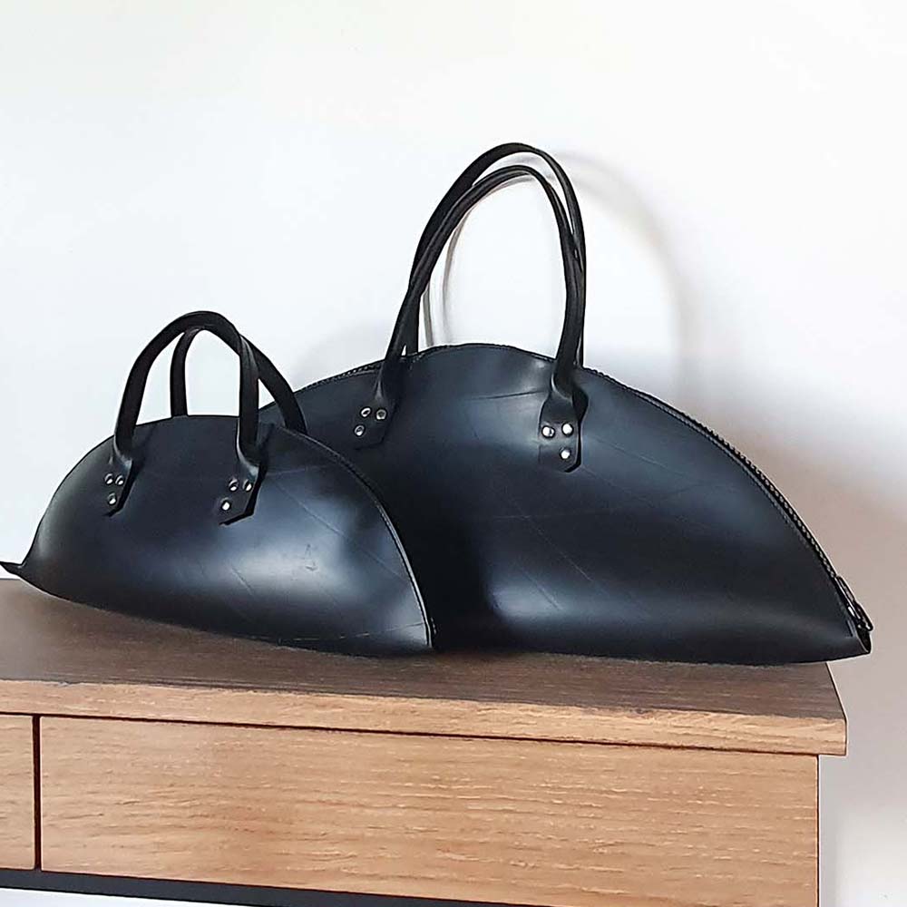 On façonne une maroquinerie alternative : des pièces uniques, sombres et élégantes, nées de caoutchouc et bois surcyclés et façonnées à la main en France. Chaque création raconte une histoire : celle du respect des savoir-faire, de l’audace esthétique, et d’un plaisir assumé.