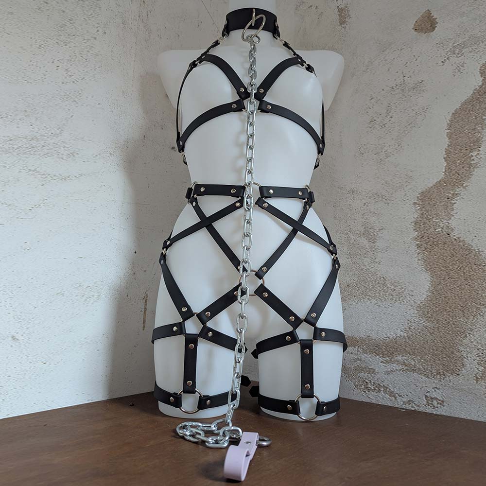 Aujourd'hui nous fabriquons, en plus des colliers, des robes, des jupes, des harnais, enfin.... Tout ce qu'il est possible de faire avec des sangles, et on continue de se développer chaque jour pour notre passion pour les accessoires et vêtements atypiques et élégants ✨